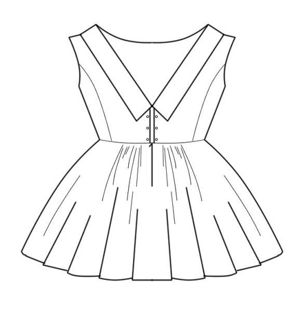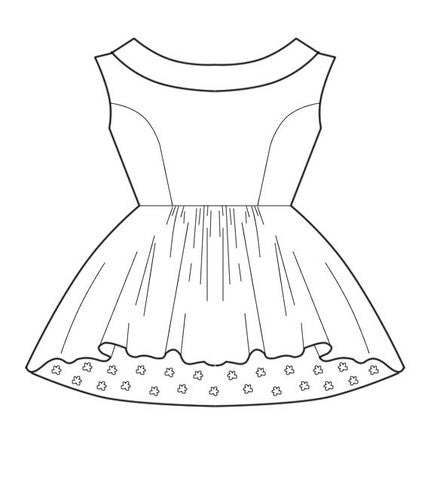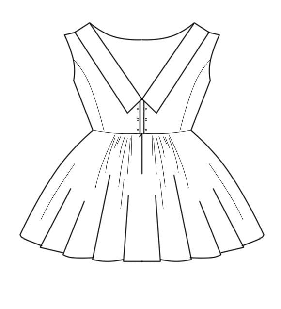 - How to cut and sew corset-based sleeveless crew-neck dress with individually cut collar and full skirt.
