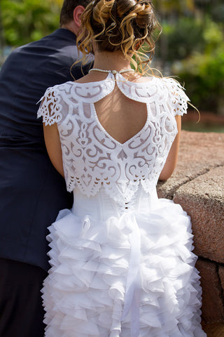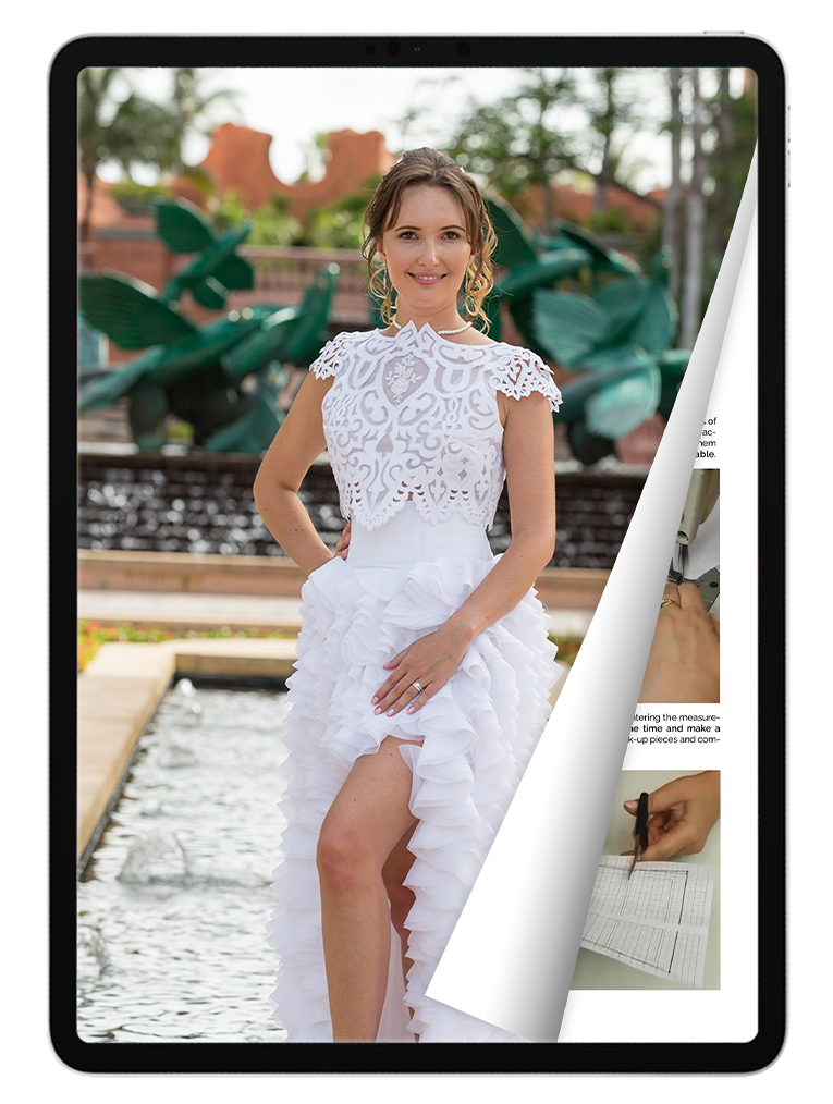 In this course you will learn how to sew popular wedding dress design – Two-Piece Wedding Dress with Lace Top and Ruffle Skirt.